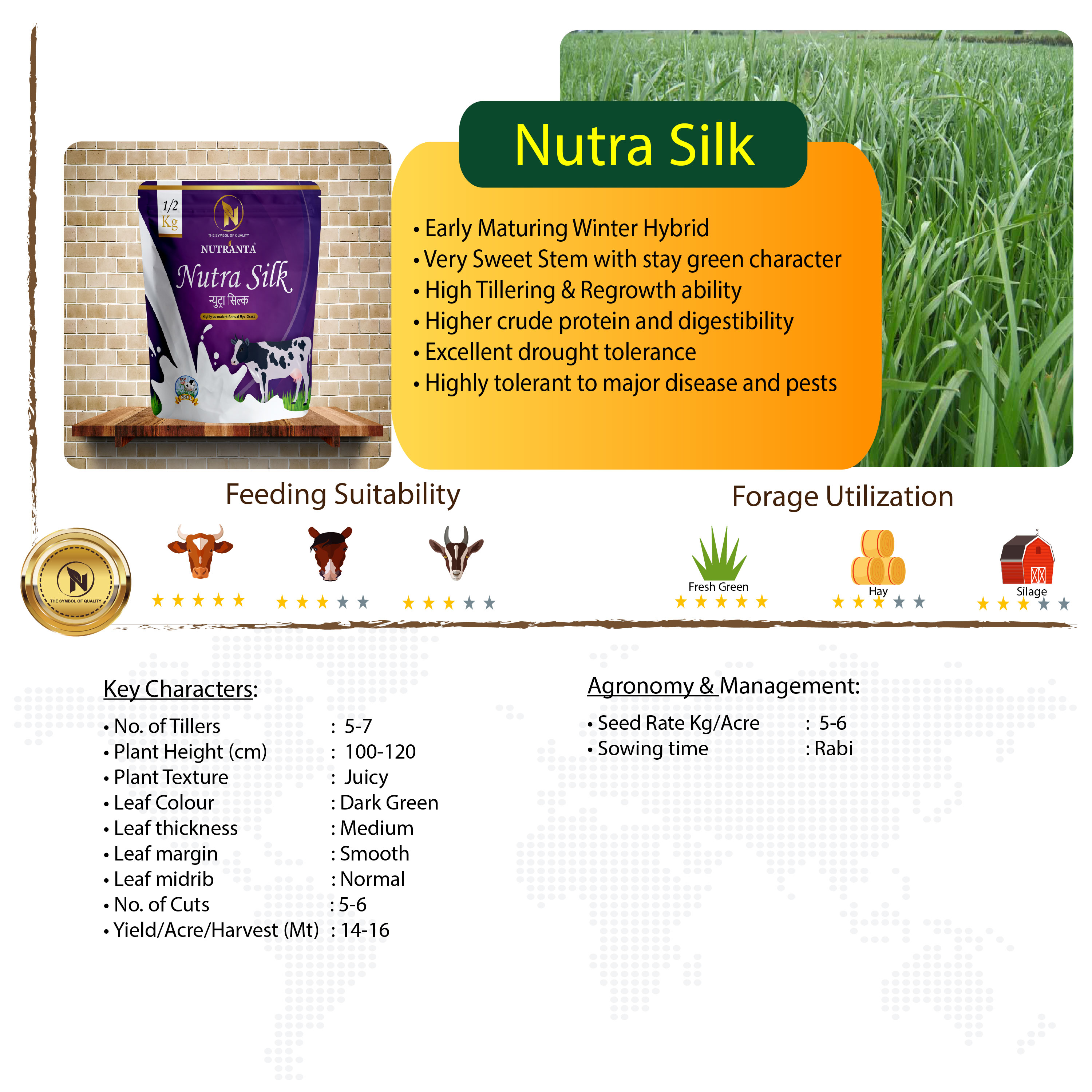 Nutra Silk is Annual Rye Grass Product. It is rich in Protein and is best suited for Winter Months. There is huge response to this product and farmers are increasingly becoming aware of benefits of using Nutra Silk.